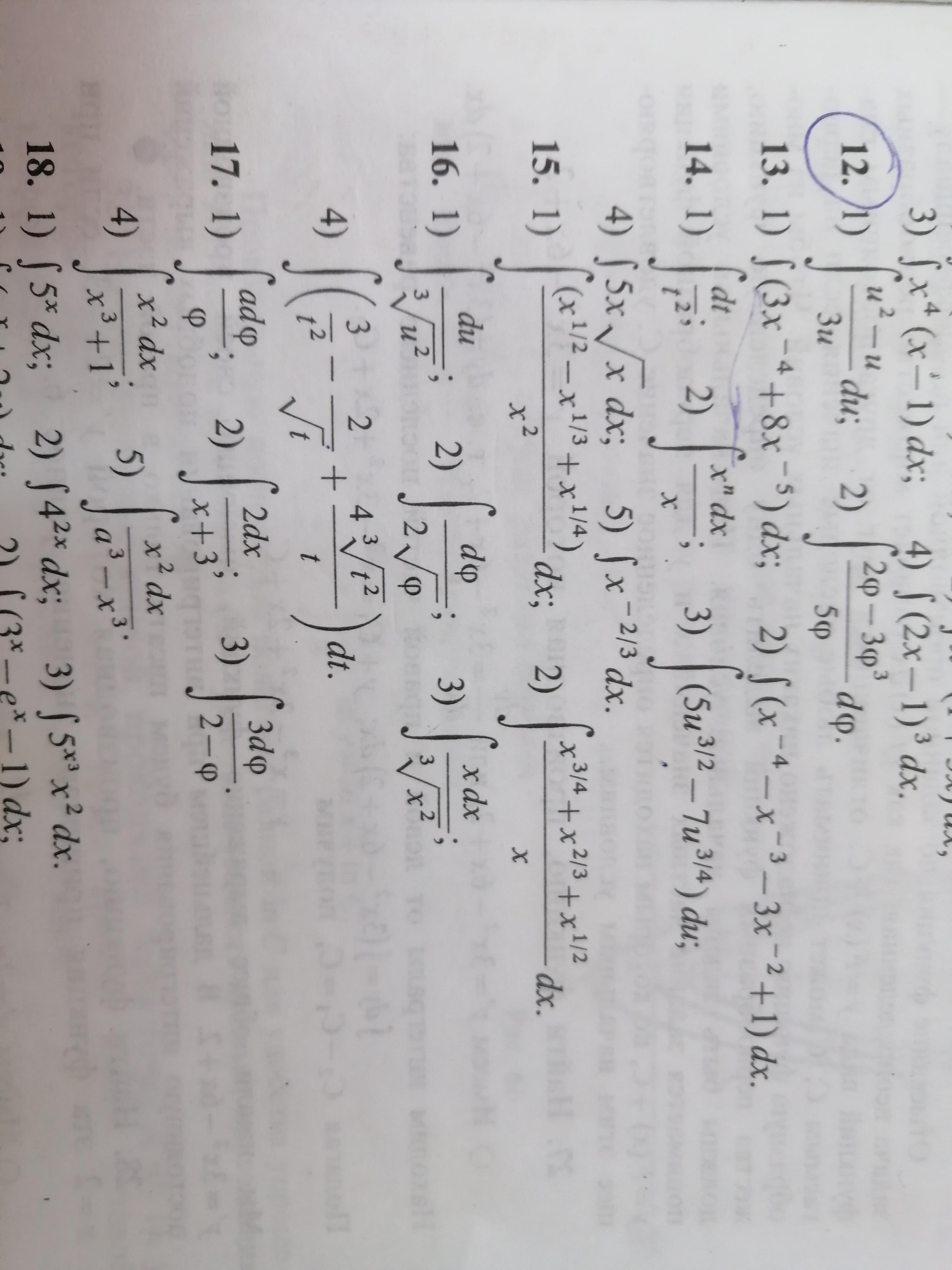 2)\int\limits( \frac{ {x}^{ \frac{3}{4} } }{x}  +  \frac{ {x}^{ \frac{2}{3} } }{x}  +  \frac{ {x}^{ \frac{1}{2} } }{x} )dx =\\ \int\limits( {x}^{ \frac{3}{4} - 1 }  +  {x}^{ \frac{2}{3}  - 1}  +  {x}^{ \frac{1}{2}  - 1} )dx = \int\limits( {x}^{ -  \frac{1}{4} }  +  {x}^{ -  \frac{1}{3} }  +  {x}^{ \frac{1}{2} } )dx =\\  \frac{ {x}^{ \frac{3}{4} } }{ \frac{3}{4} }  +  \frac{ {x}^{ \frac{2}{3} } }{ \frac{2}{3} }  +  \frac{ {x}^{ \frac{3}{2} } }{ \frac{3}{2} }  + C =  \frac{4}{3}  \sqrt[4]{ {x}^{3} }  +  \frac{3}{2} \sqrt[3]{ {x}^{2} }   +  \frac{2}{3} x \sqrt{x}  + C