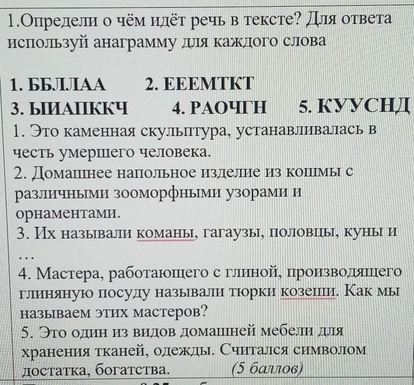 4. Мастера, работающего с глиной, производящего глиняную посуду называли тюрки козеши. Как мы называем этих мастеров?