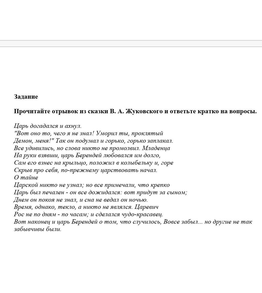 Прочитайте отрывок из сказки В. А. Жуковского и ответьте кратко на вопросы.