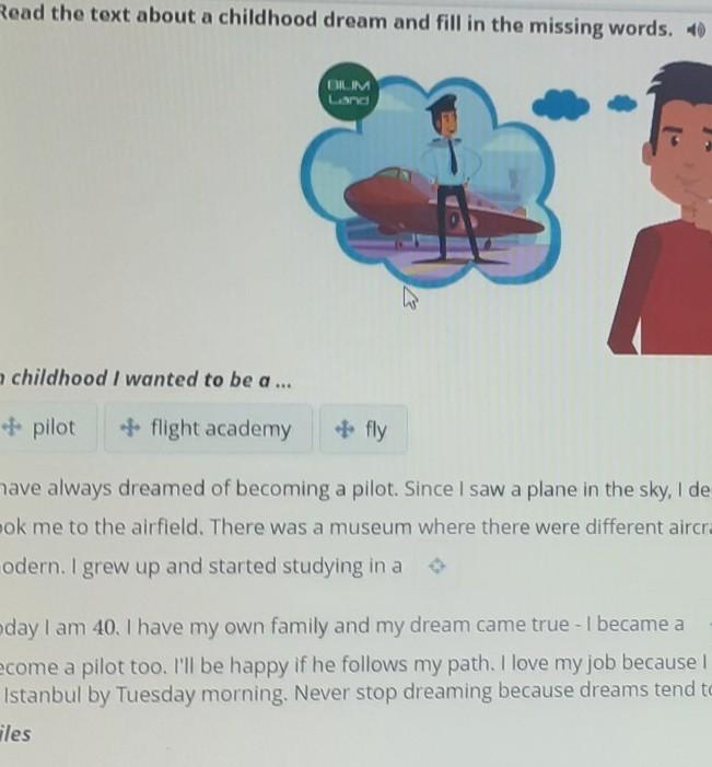 I have always dreamed of becoming a pilot. Since I saw a plane in the sky, I decided that I would . My dad often