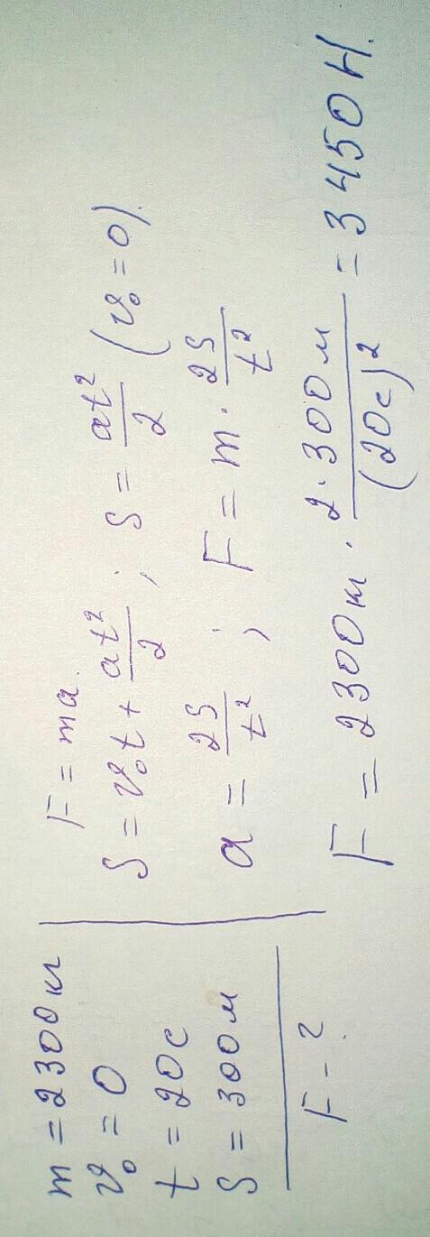 4. Автомобиль массой 2300 кг начинает двигаться с постоянным ускорением в течение 20с. За это врем он проходит 300м. Сила, действовавшая в течение этого времени на автомобиль, по модулю равна…