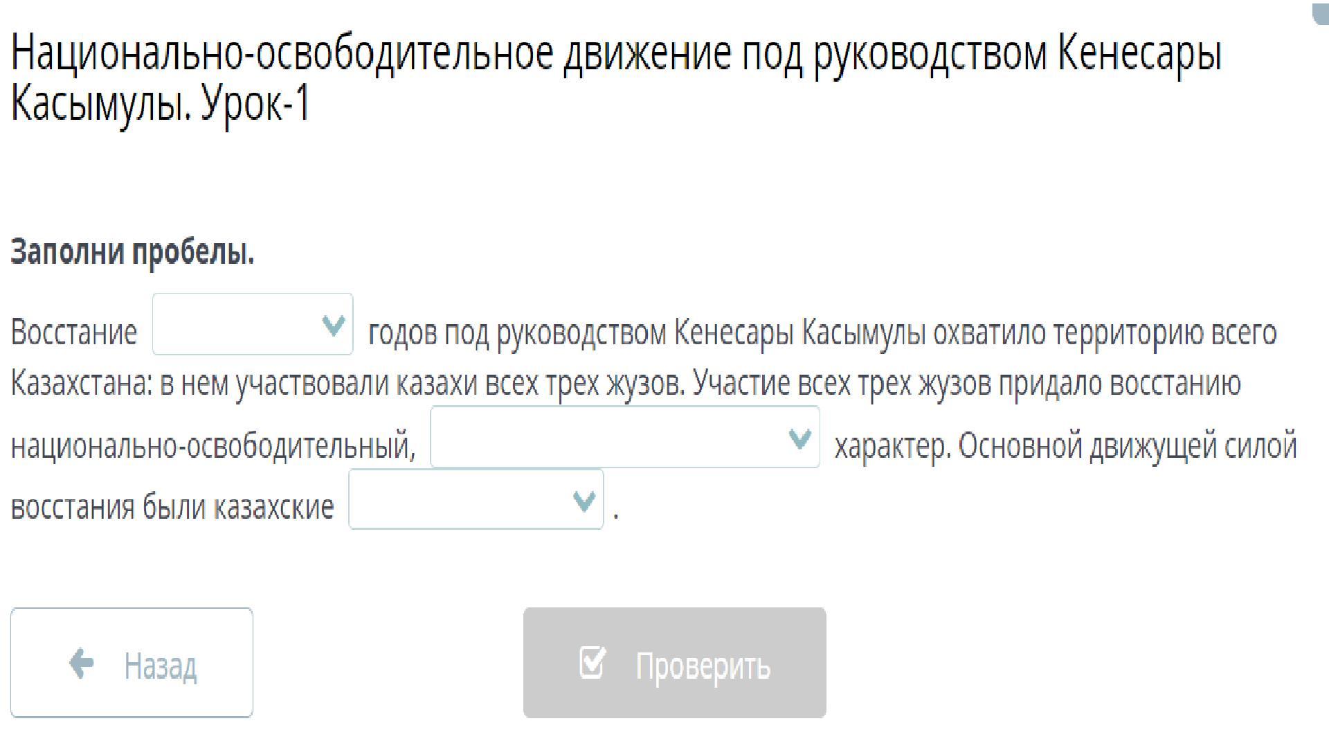 годов под руководством Кенесары Касымулы охватило территорию всего Казахстана: в нем участвовали казахи всех трех жузов. Участие всех трех жузов придало восстанию национально-освободительный,