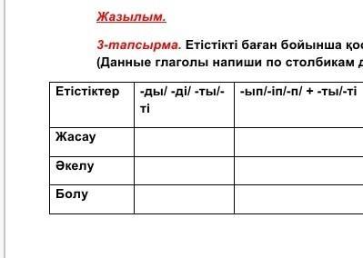 3-тапсырма. Eтістікті баған бойынша қосымшалармен дұрыс жалғап жаз. (Данные глаголы напиши по столбикам добавляя нужные окончания
