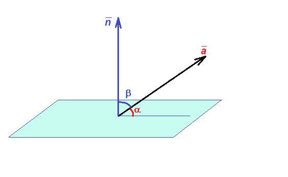 Синус угла между прямой и плоскостью равен модулю косинуса угла между прямой и нормалью к плоскости: