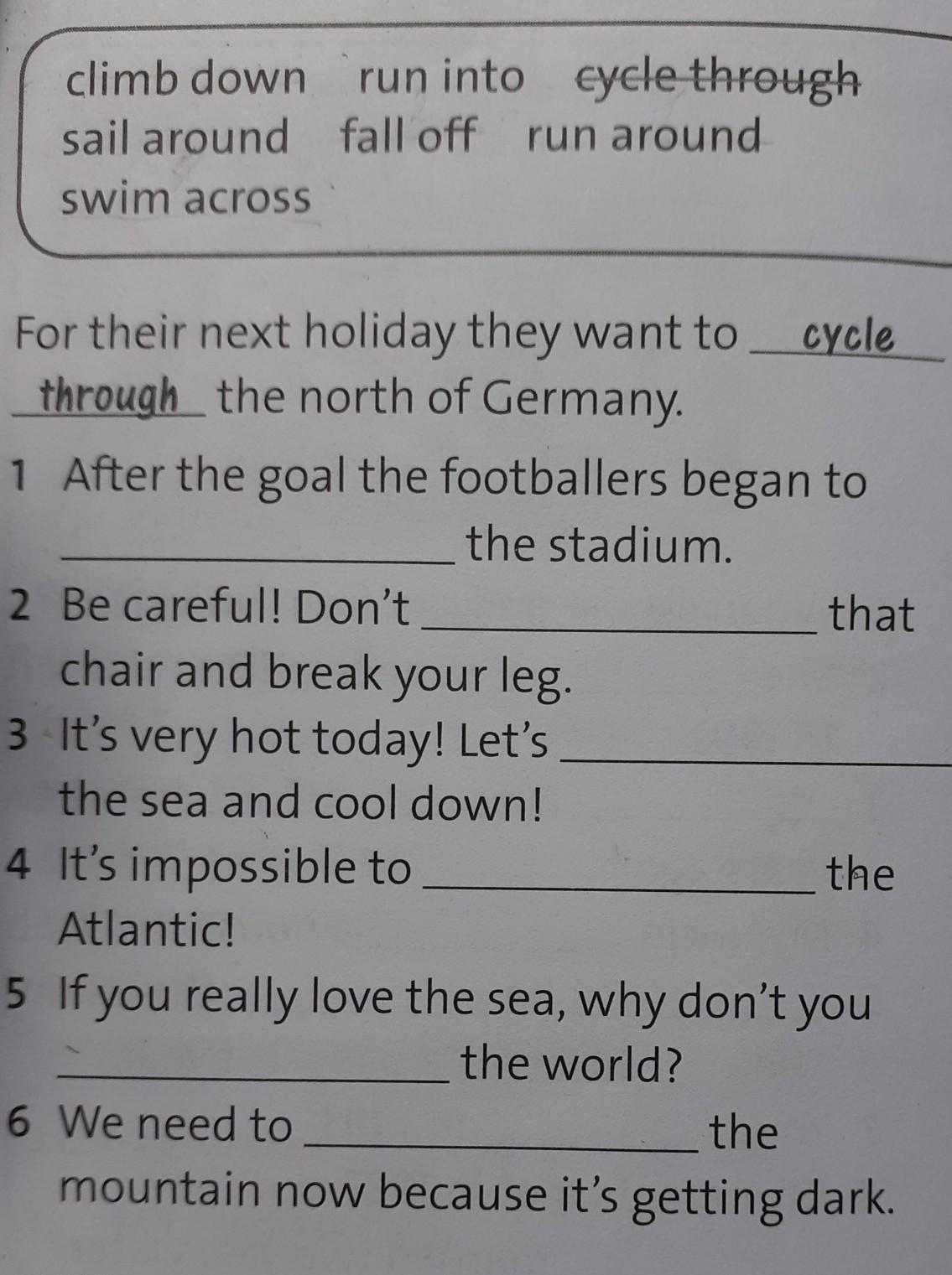 climb down run into cycle through