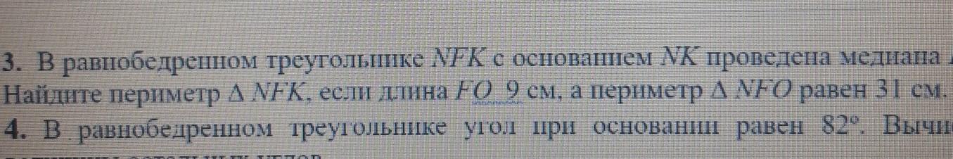 В равнобедренном треугольнике NFK с основанием NK проведена медиана FO .