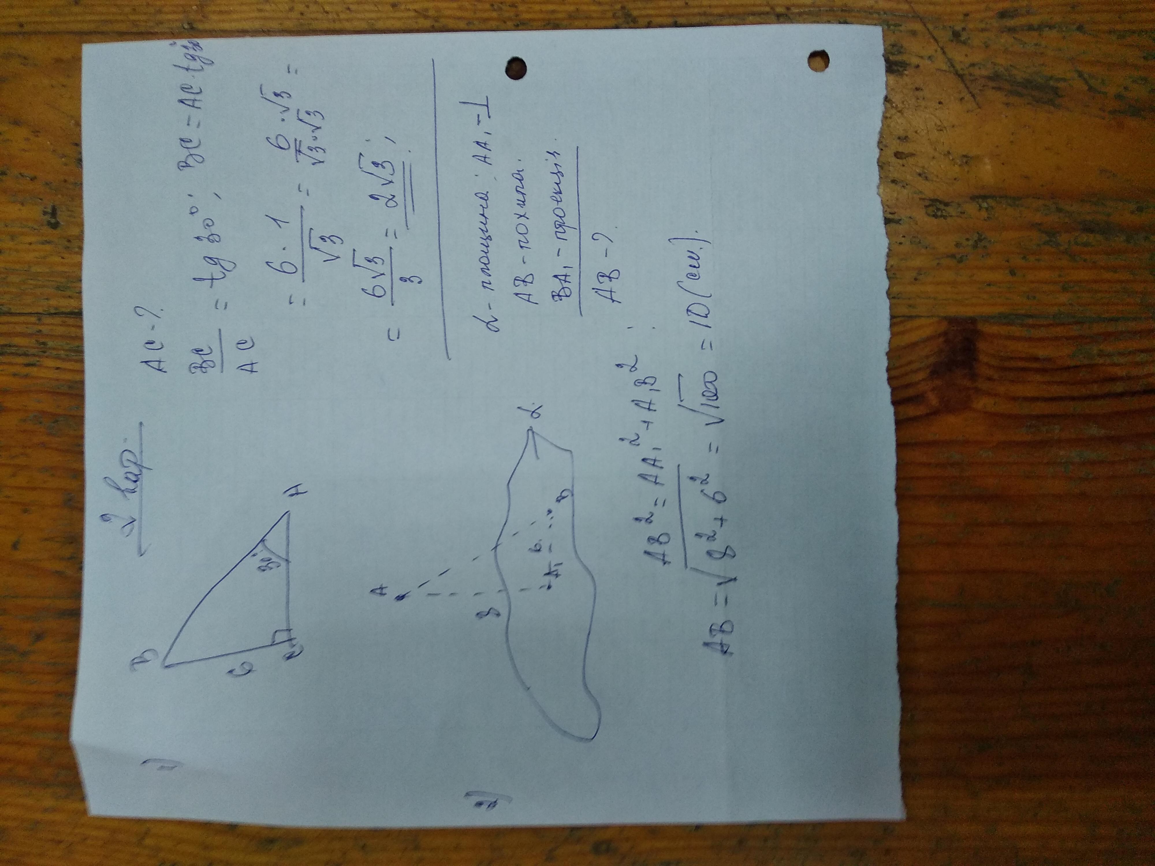 в первом пункте ошибка, надо делить на тангенс угла, а не умножать: АС=ВС/tg30=6*корень3