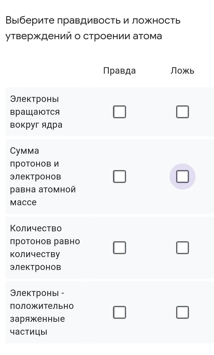3- правда (атомы не имеют заряда (нейтральны), следовательно число положительных и отрицательных частиц равно)