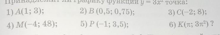 1)х=1, тогда у=3*1^2=3 (Принадлежит)