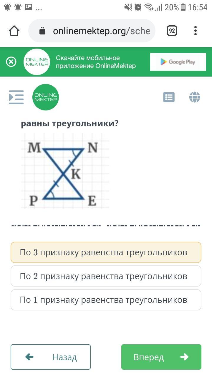 следовательно треугнольник MKN = треугольник PKE по стороне и прилежащим к ней углам