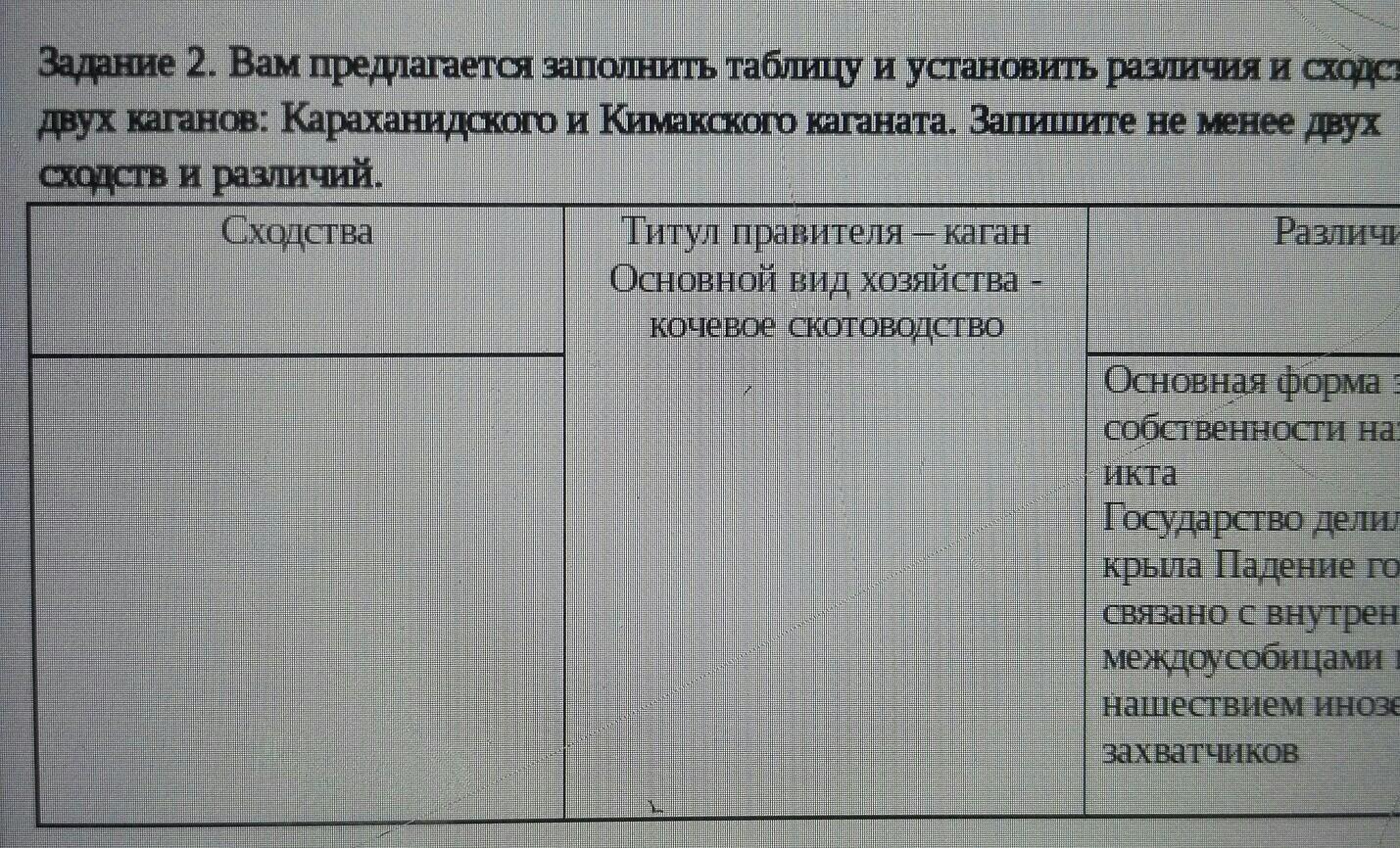 Задание 2. Вам предлагается заполнить таблицу и установить различия и сходства для