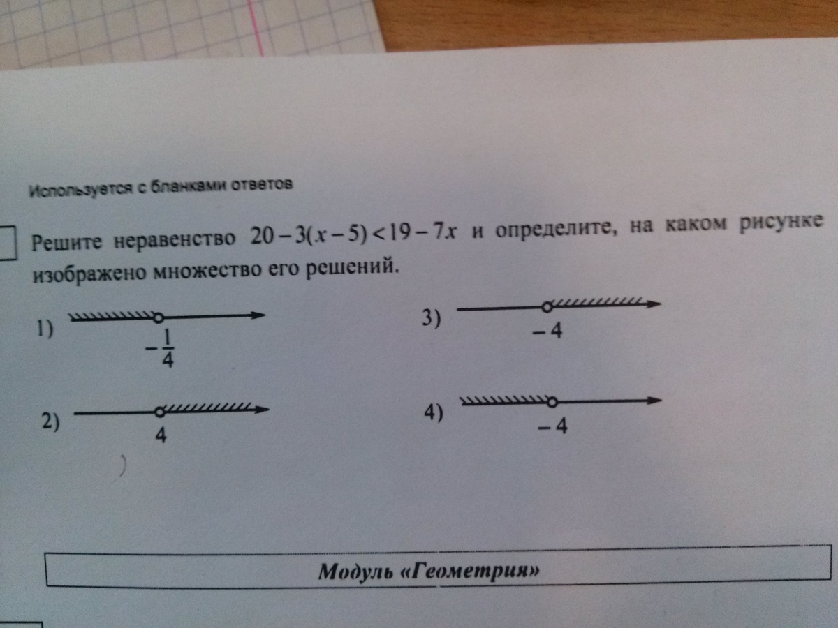 Решите неравенство 20-3(x-5)<19-7xи определите ,на каком рисунке изображено множество его решений
