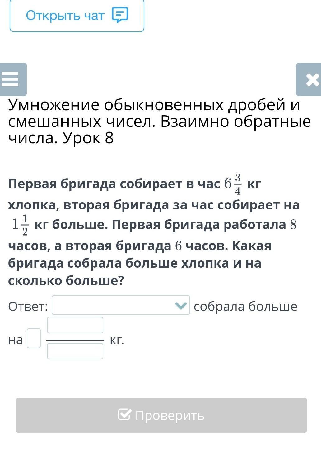 кг больше. Первая бригада работала 8 часов, а вторая бригада 6 часов. Какая бригада собрала больше хлопка и на сколько больше?