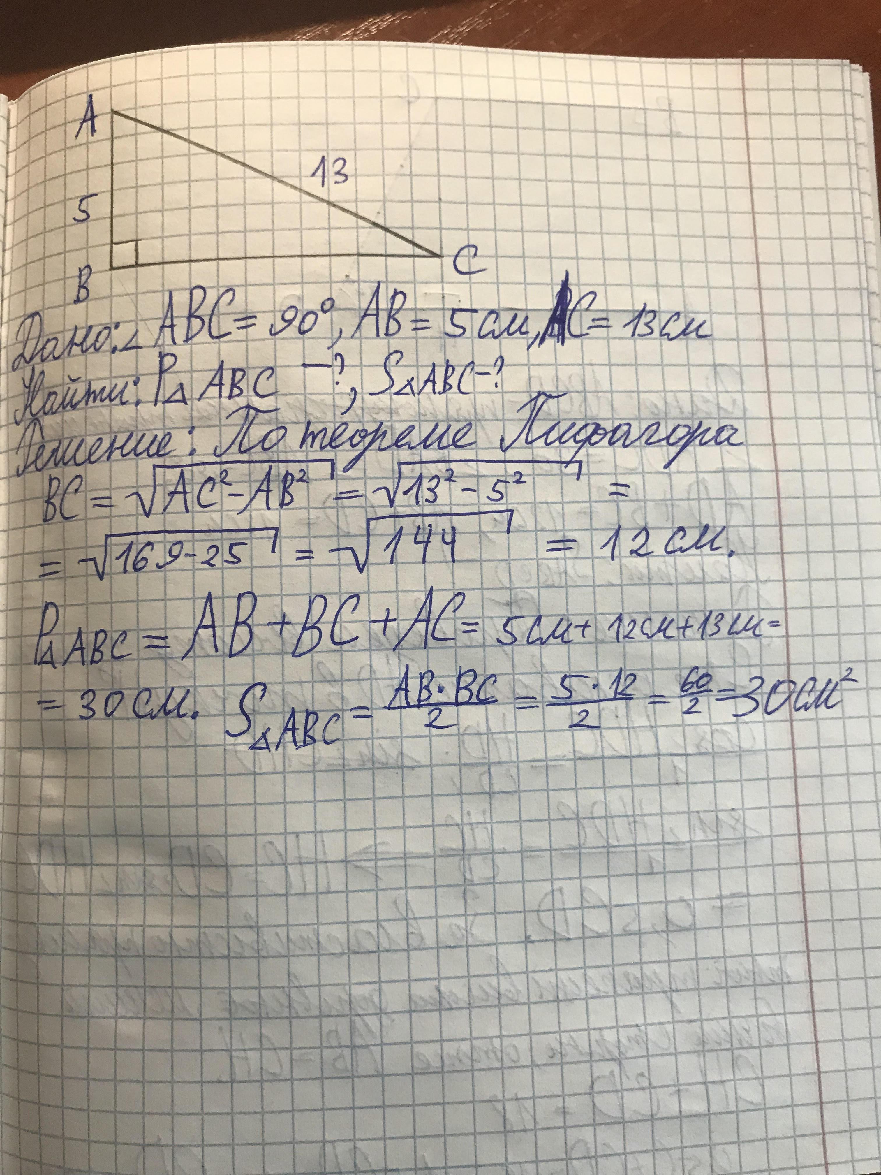 Найдите площадь прямоугольного треугольника, если один из катетов равен 12 см, а гипотенуза равна 13 см.