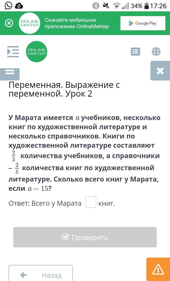 Возьмем a сразу за 15. Значит 15*2/3= 10 книг по художественной лиитературе. 10*2/5=4 справочника. Дальше все складываем. 15+10+4=29 книг.