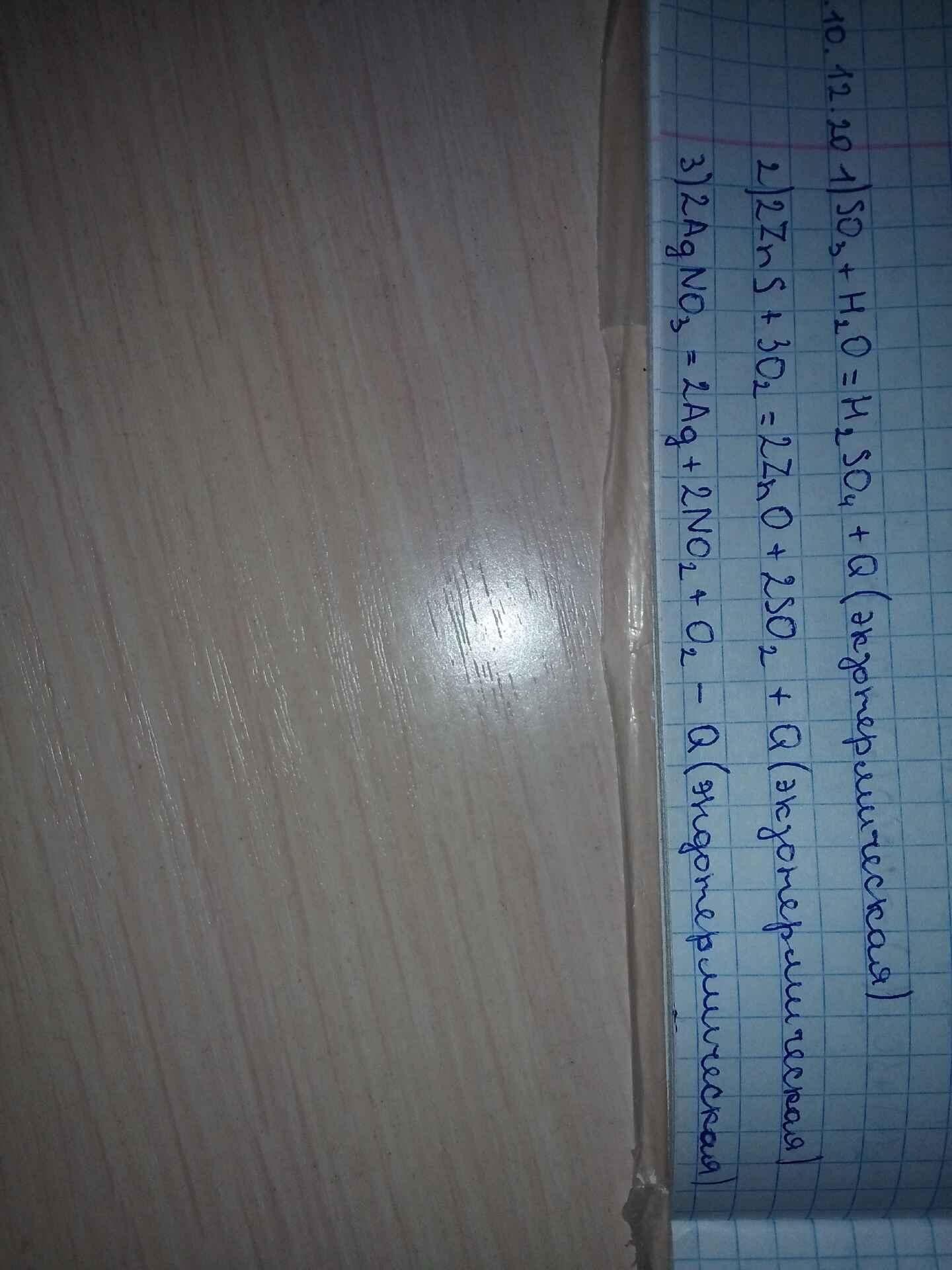 b) ZnS + O2 = ZnO + SO2 + Q (1балл)
