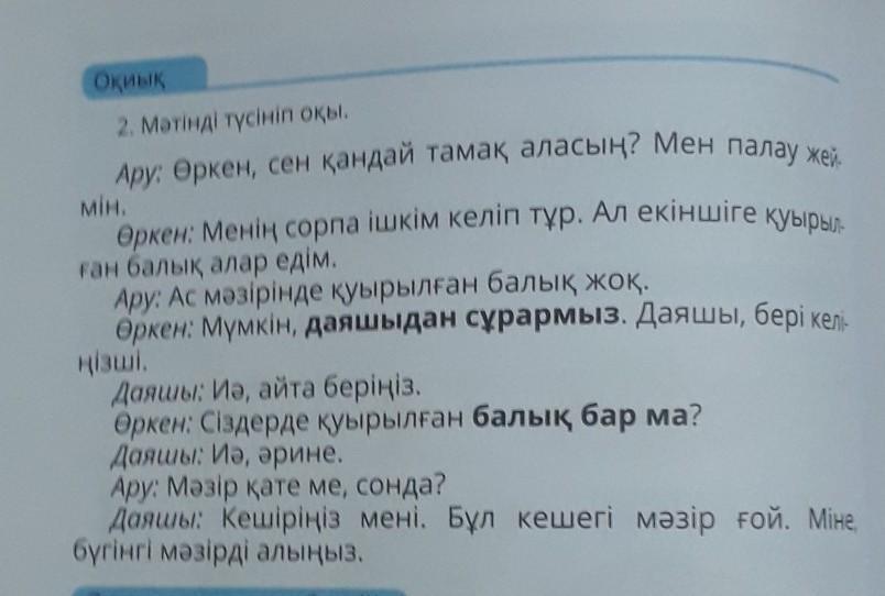 Өркен мен Ару қайда отыр? Олар қандай тағам алғышарты келді? Даяшы қандай қателік жіберген?