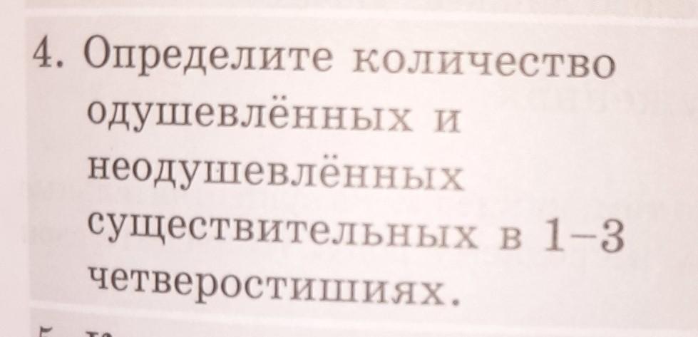 определите количество одушевлённых и неодушевлённых существительных в 1-3 четверостишиях помогите пж срочно дам 20 баллов