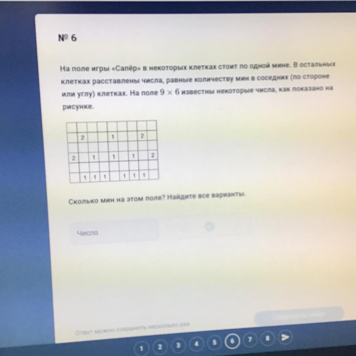 5б) Аналогично 5а, только в этом случае остается только две группы, в каждой из которых по одной мине. Всего мин 2 + 6 = 8.