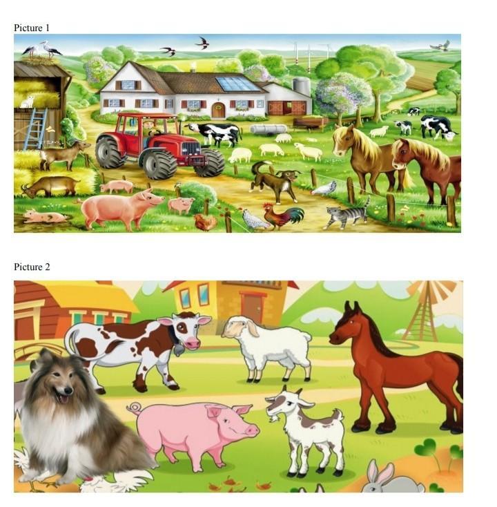 On the 1 picture i see a big farm in countryside. There are 31 animals. There are pigs, chickens, horses, sheep, cows, birds, goats, cat and dog. People grow domestic animals for getting food. For example, they grow cows to get milk, sheep for get wool, chickens to get eggs. I want to live in a village. Because there is a lot of fresh air and beautiful landscape.