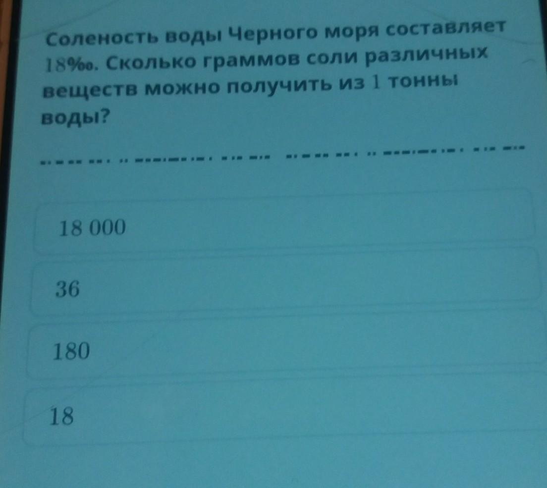 Соленость воды Черного моря составляет 18%•. Сколько граммов соли различных веществ можно получить из 1 тонны воды?