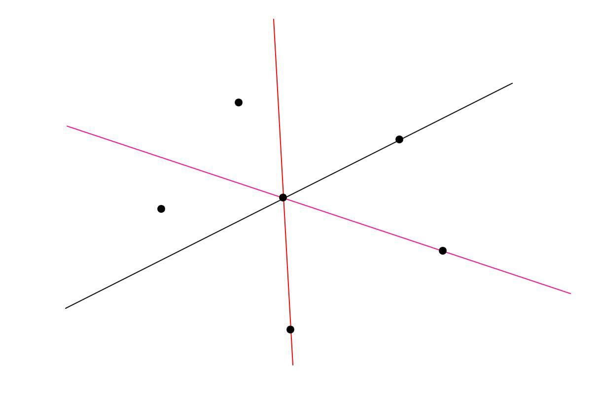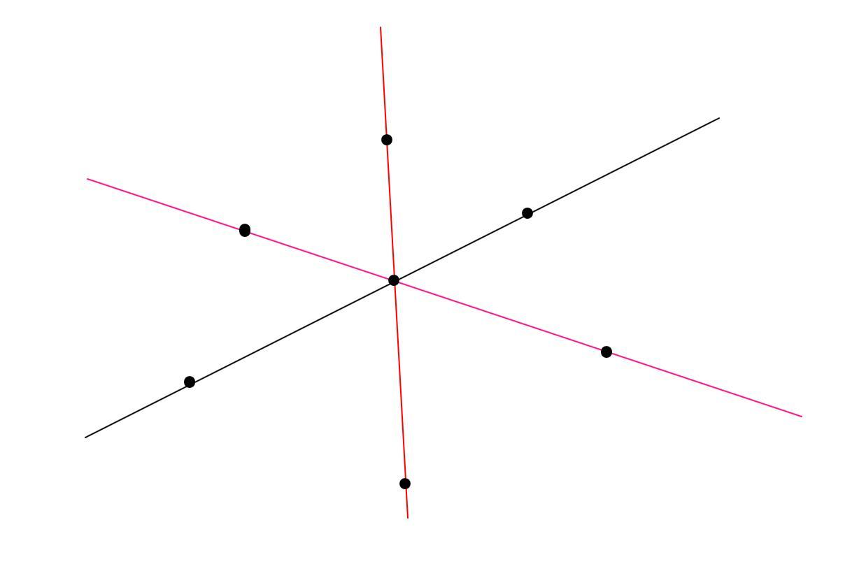 На плоскости изображены три прямые, пересекающиеся в одной точке, и несколько точек так, что по обе стороны от каждой прямой находится ровно по две точки (точки, лежащие на самой прямой, не относятся ни к одной из сторон). При этом на прямых суммарно лежит n точек. При каких значениях n такое возможно?