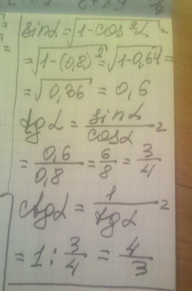 3.Для острого угла а найдите ѕina, tga, ctg а, если cosa=0,8
