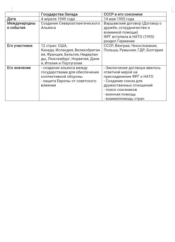 Проследите основные этапы формирования системы союзов в мире в 1940-2000-е гг заполните таблицу государства Запада и ССCP и его союзники..написать надо дату, международные события, его участники, его значения