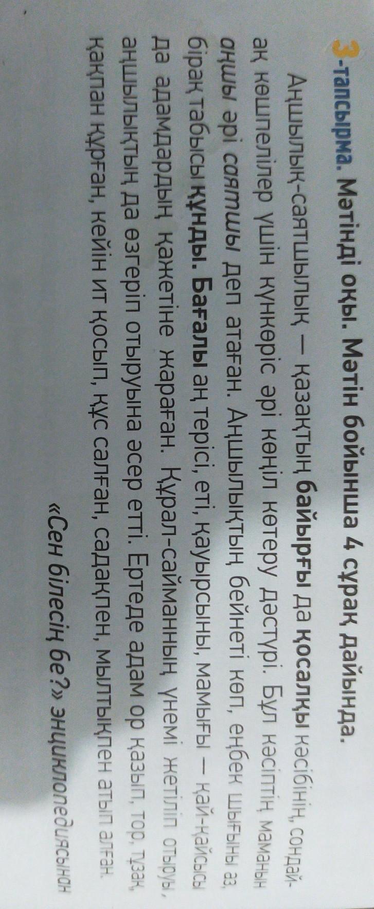 2.Аңшылық-саятшылық кімнің дәстүрі?