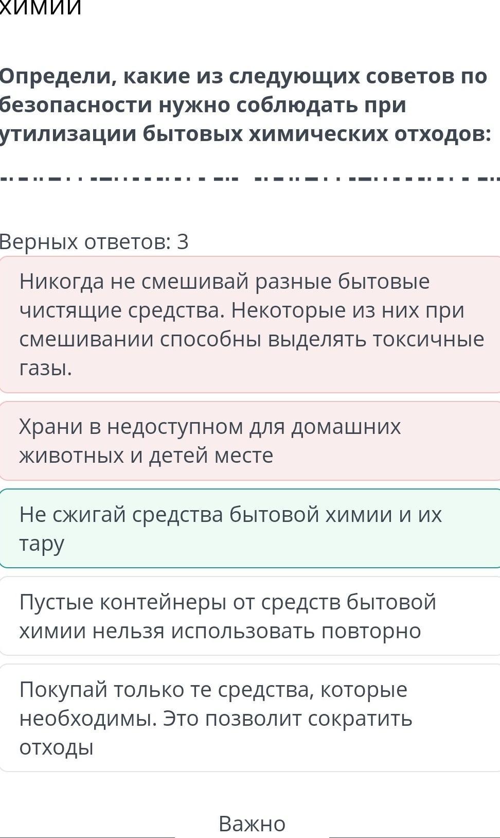 Определи, какие из следующих советов по безопасности нужно соблюдать при утилизации бытовых химических отходов: