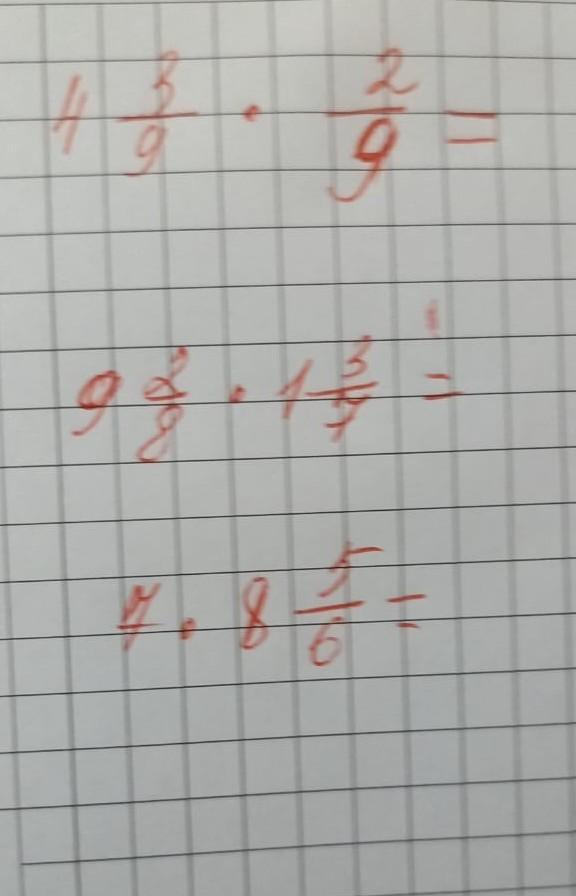 1) 4 3/9 * 2/9 = 39/9 * 2/9 = 26/27 ;