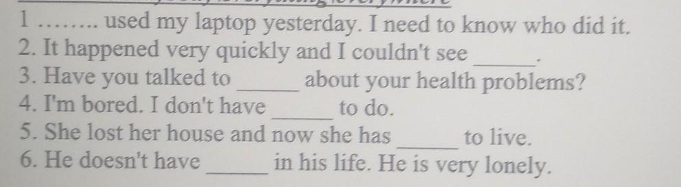 complete the sentences with somebody/anybody/nobody/something/anything/nothing/somewhere/anywhere/nowhere/everybody/everything/everywhere.СРОЧНО.ДОПОМОЖІТЬ.