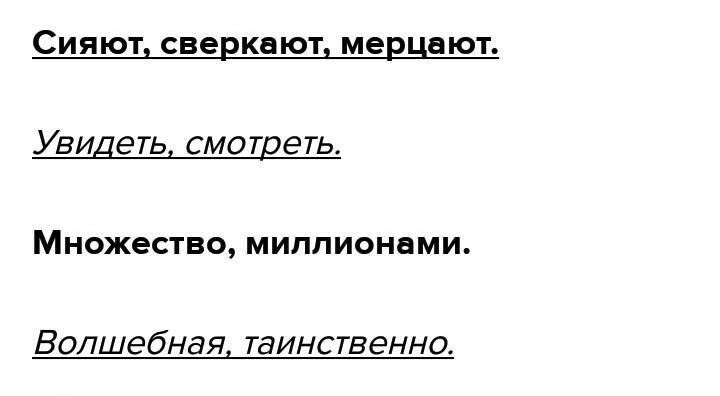 Ответ: светят-сияют-сверкают-мерцают (синонимы)