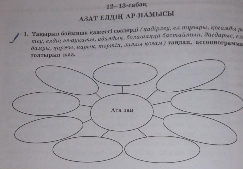 1. Тақырып бойынша қажетті сөздерді (қадірлеу, ел тұғыры, қоғамды рет