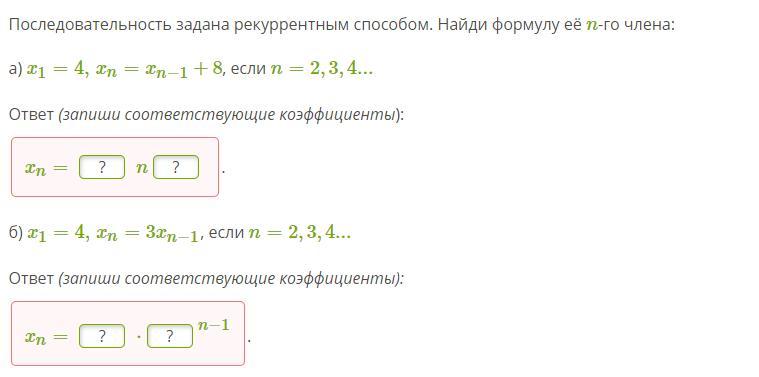 а) x1=4,xn=xn−1+8, если n=2,3,4...