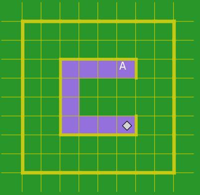 Необходимо перевести Робота из начального положения (◊) в точку A, закрашивая при этом указанные клетки поля. Размеры стен и расстояние между ними могут быть произвольны.