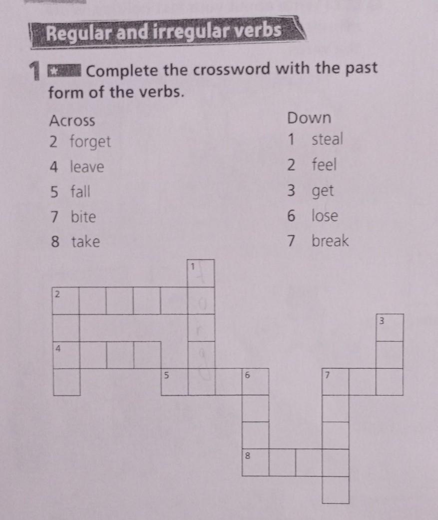 2. Forgot 4. left 5. fell 7. bit 8. took