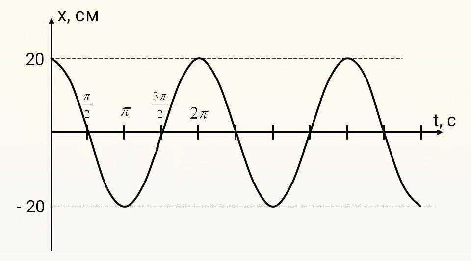 Математический маятник имеет длину подвеса 10 м. Амплитуда колебаний 20 см построить график зависимости х(t)