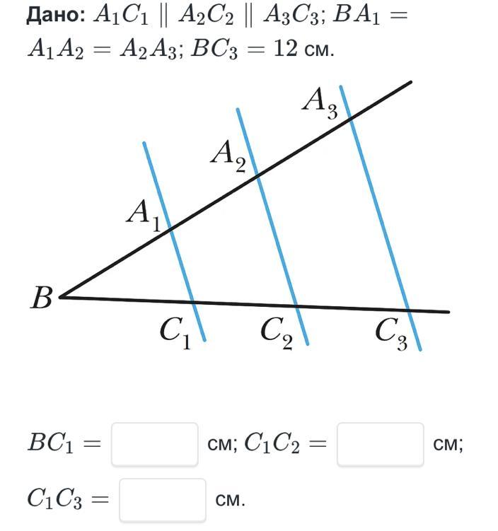 Дано: A1C1 || A2C2 || A3C3; BA1= A1A2= A2A3; BC3=12 см