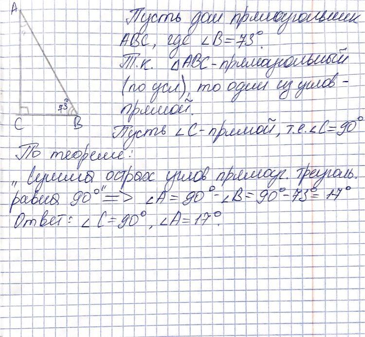 оодин из углов треугольника равен 73 градуса чему равны другие углы