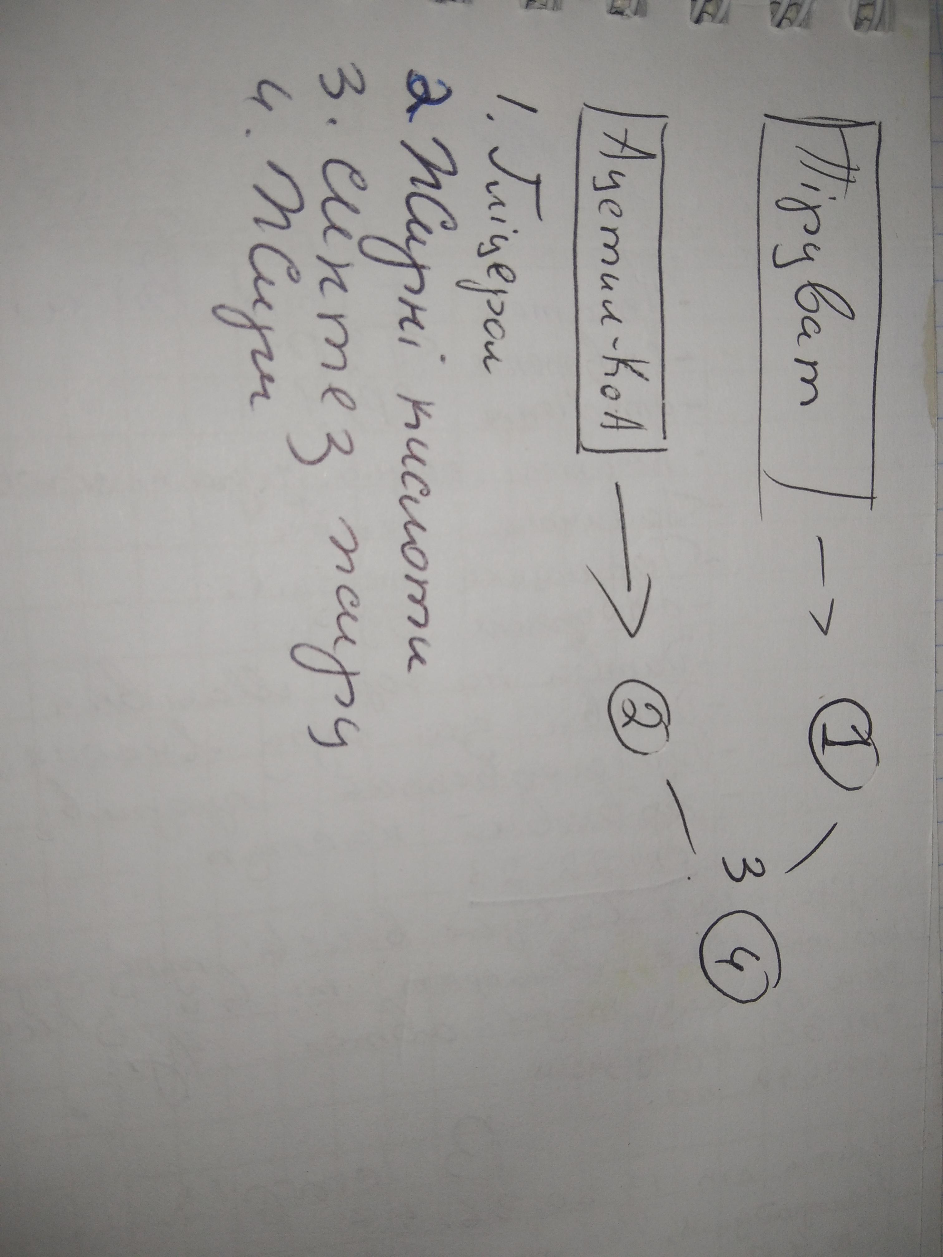 Срочно! Биология. Розгляньте малюнок 2. Складіть схему синтезу жиру, враховуючи, що попередником гліцеролу може бути піруват, а жирних кислот — ацетил-КоА. Замість знаків запитання «?» укажіть назви сполук і назву процесу.