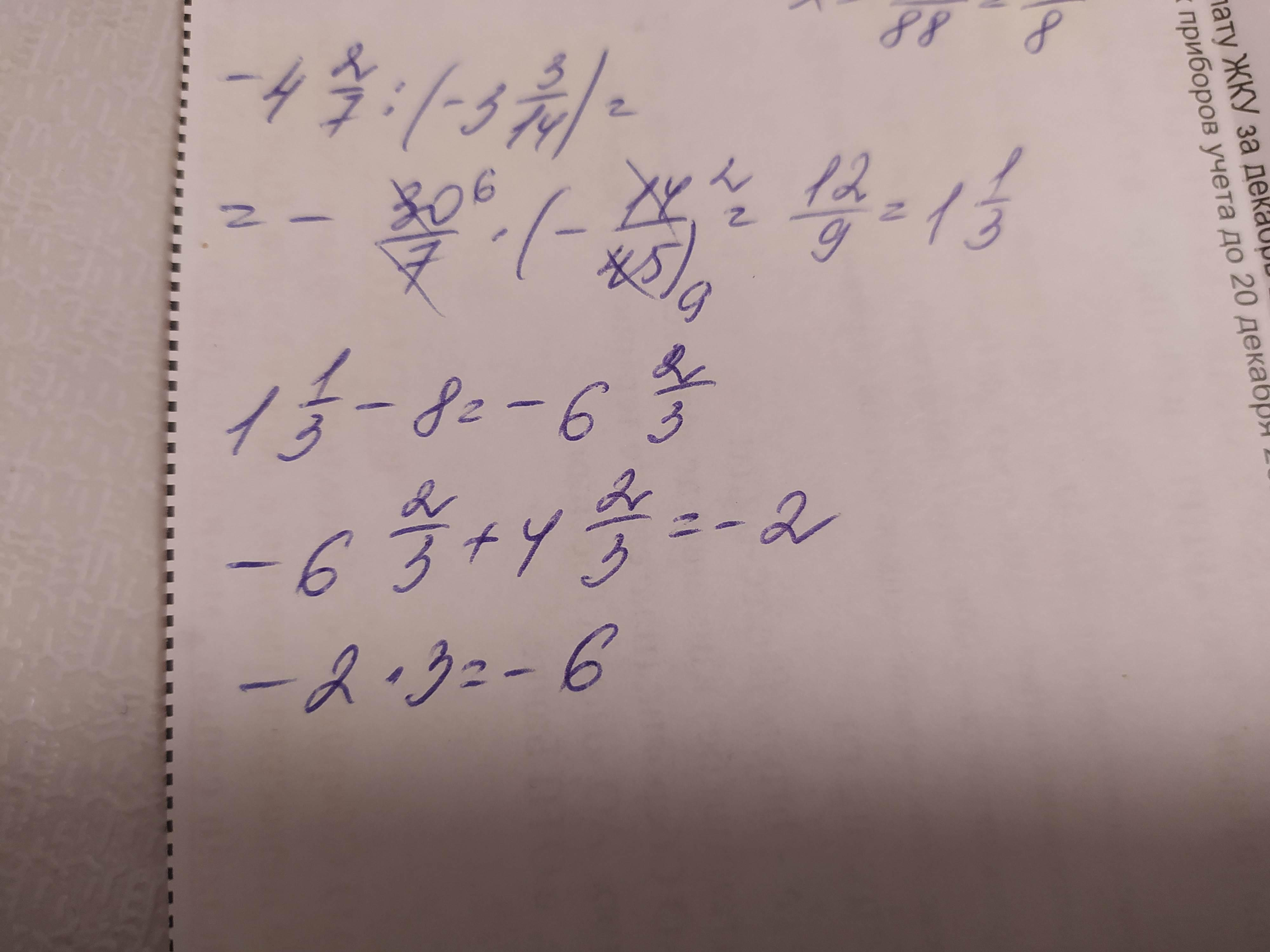 (-4 2/7:(-3 3/14) – 8 + 4 2/3) * з​
