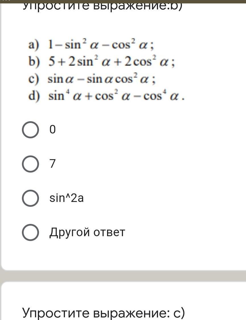 Упростить выражение, используя sin(t)²+cos(t)²=1
