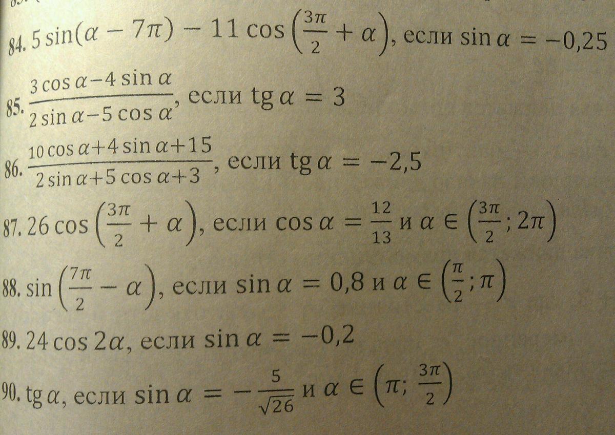 84) 5sin(a - 7pi) - 11cos(a + 3pi/2) = 4