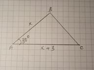 Пусть АВ=х см, АС=х+3 см