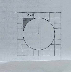 на рисунке видно, что 6 см это и радиус круга , находим площадь круга и площадь квадрата, а затем отнимаем от площади квадрата площадь круга и получаем площадь закрашенной фигуры: S=πr2=3,14*6^2=3,14*36=113,04 см^2 площадь круга; S=a^2=(6+6)^2=144 см^2 площадь квадрата; 144-113,04=30,96 см^2 площадь закрашенной фигуры