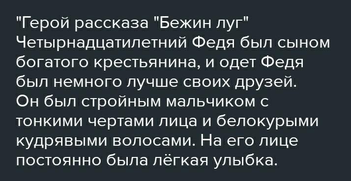 Описание Феди "Бежин Луг по плану,прошу ,срочно,даю 50 баллов