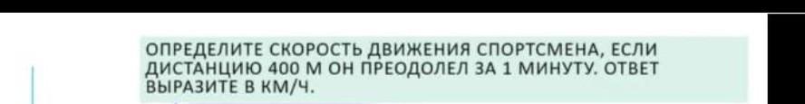 определите скорость движения спортсмена если дистанцию 400 метров он преодолел за 1 минуту , ответ нужно записать в км/ч