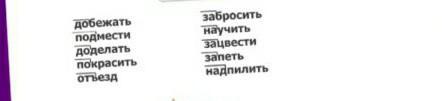 Добежать, забросить,подмести,научить,зацвести,доделать,запеть,покрасить,надпилить,отъезд