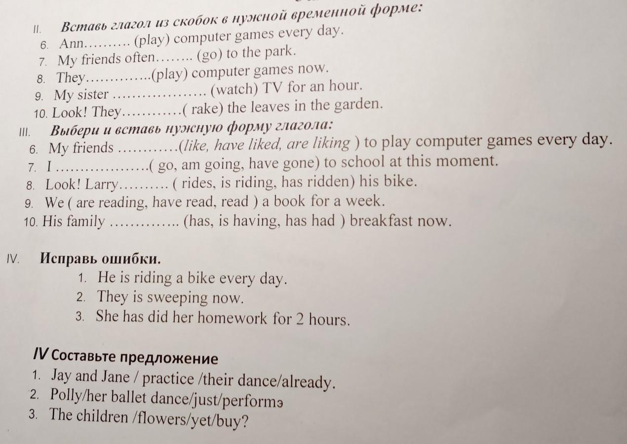 Выбери и вставь нужную форму глагола: